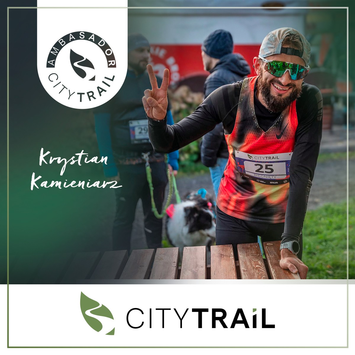 Cześć, nazywam się Krystian Kamieniarz, w świecie biegowym jako „biegnięty". Biegam od 2016 roku, natomiast w cyklu CITY TRAIL rok temu wystartowałem po raz pierwszy – i to była „miłość od pierwszego wejrzenia". W tym sezonie mam ogromną przyjemność dołączyć do grona oficjalnych Ambasadorów CITY TRAIL! Dla mnie to nie tylko zawody – to okazja, by ścigać się z najlepszymi biegaczami i ciągle się rozwijać. Kocham tę koleżeńską atmosferę, wzajemne wsparcie na trasie i profesjonalną organizację, dzięki którym każdy bieg to czysta przyjemność.