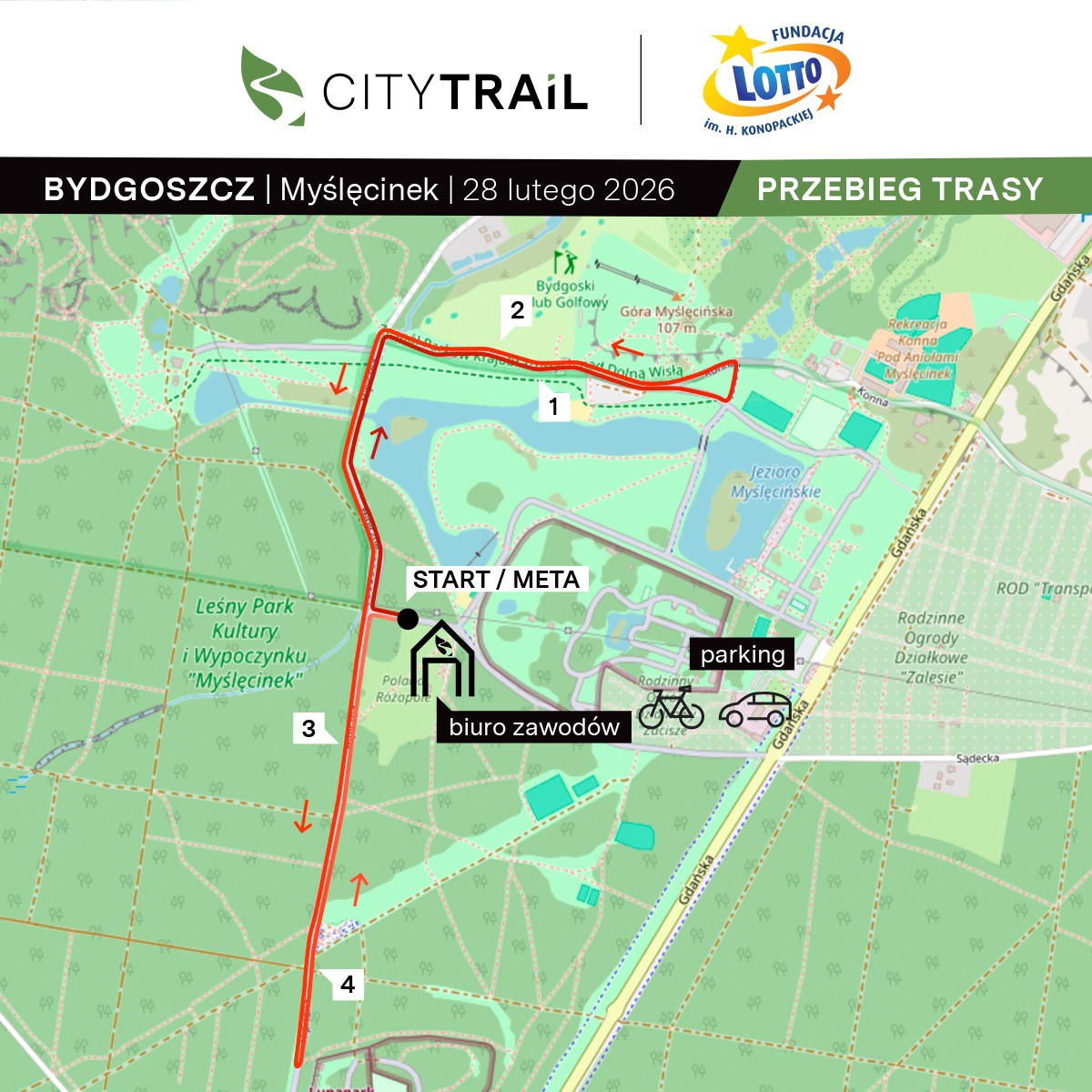 - Wszystkie trasy CITY TRAIL Junior będą poprowadzone ulicą Hipiczną. Szczegóły przekażemy podczas zbiórek przed biegiem.